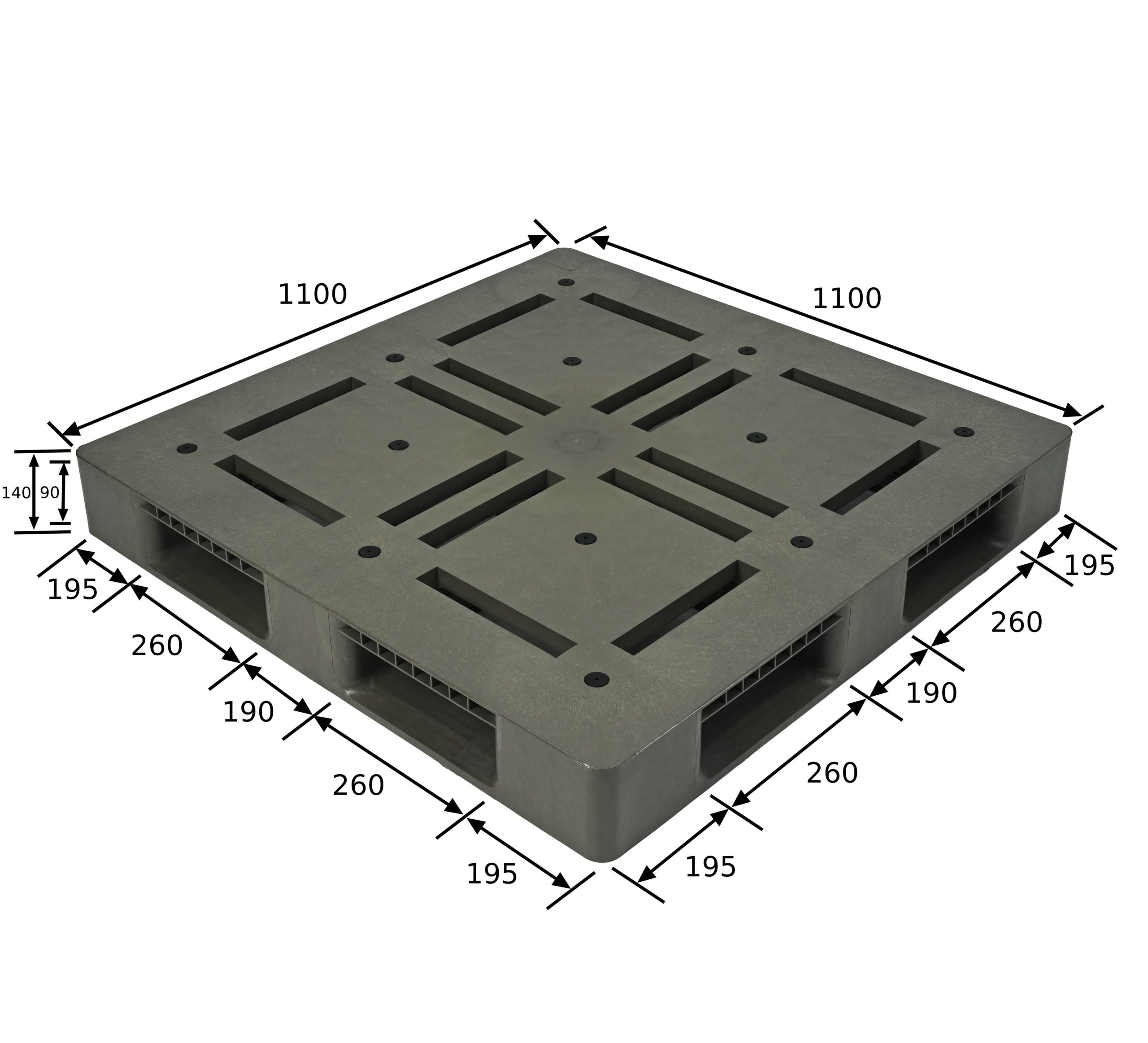 新品プラスチックパレット1100×1100×140 片面使用 4方差し 残存庫数:140枚